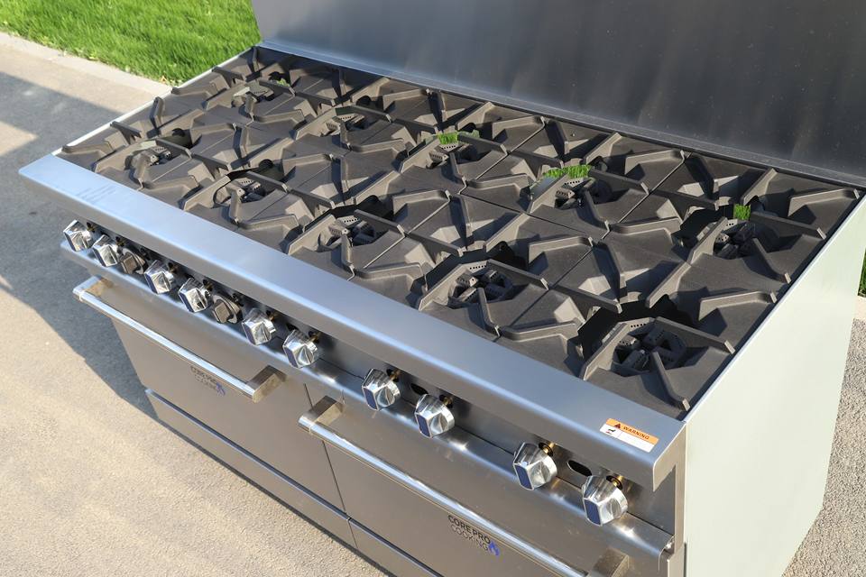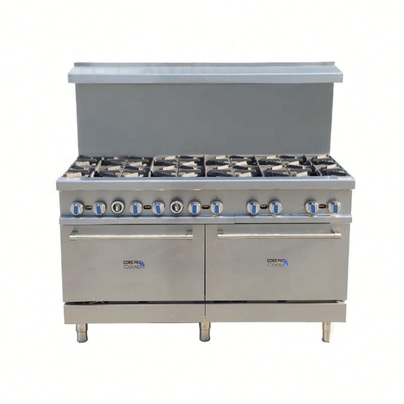เตาแก๊ส10เตาพร้อมเตาอบสองชั้นเตาก๊าซสแตนเลสในเชิงพาณิชย์แบบตั้งได้ฟรี