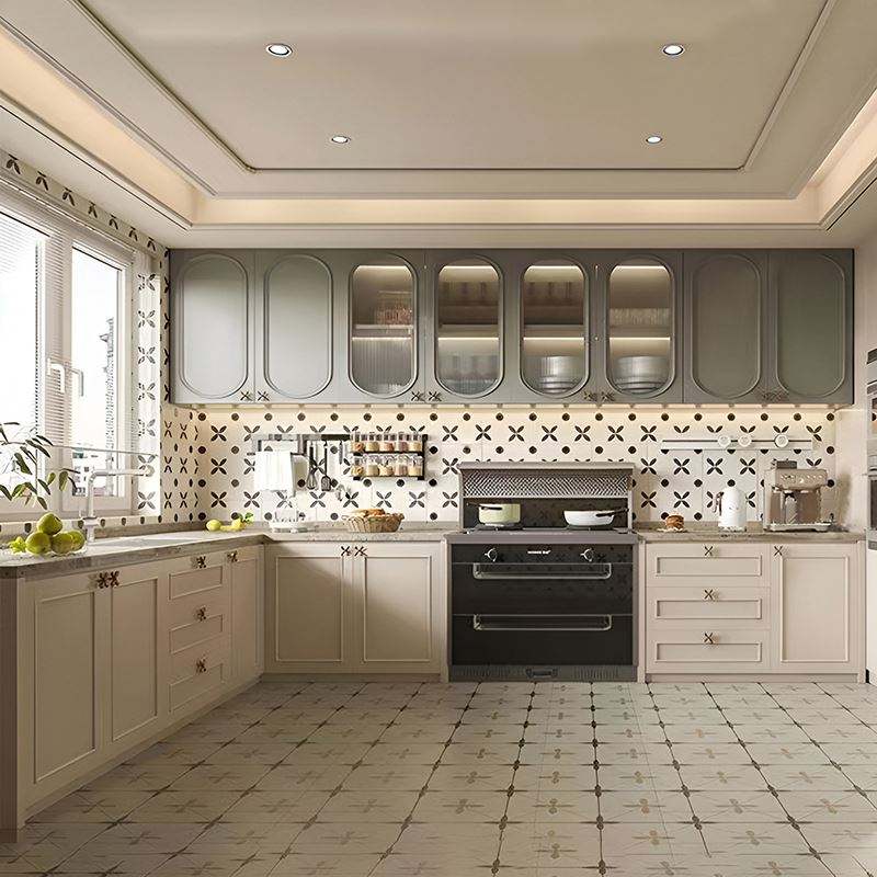 Free Whole House Design Red Oak Wood Kitchen Cabinet French Style Cream Color Full Kitchen Cabinet Set