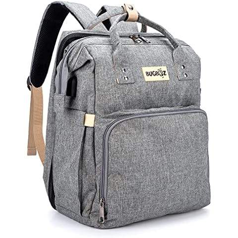 กระเป๋าเป้ใส่ผ้าอ้อมเด็กแบบพับได้อเนกประสงค์ พร้อมพอร์ต USB และคุณสมบัติกันน้ำ ตัวอย่างสินค้าฟรี