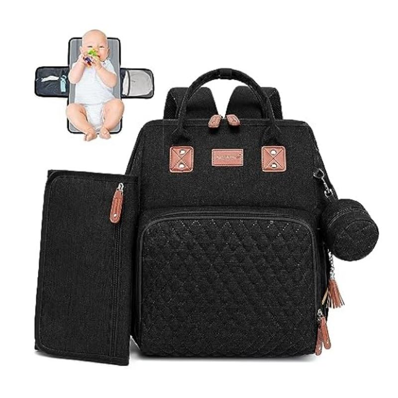 กระเป๋าใส่ผ้าอ้อมเด็กพร้อมแผ่นรองเปลี่ยนผ้าอ้อมสำหรับทุกเพศ: กระเป๋าเป้สะพายหลังอเนกประสงค์ขนาดใหญ่สำหรับการเดินทาง