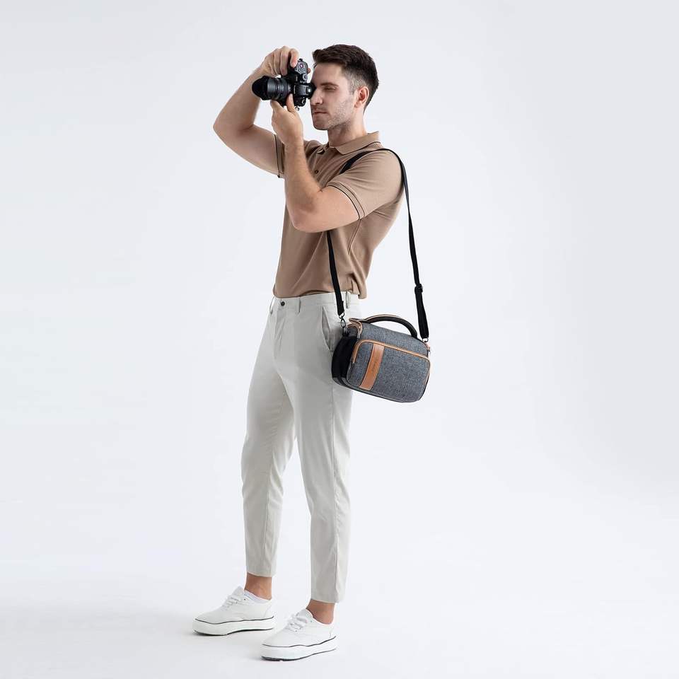 กระเป๋าสะพายกล้องแบบฟรีไซส์ 2-in-1 ใช้ได้ทั้งแบบสะพายไหล่เดียวหรือเป็นกระเป๋าเป้สะพายหลังขนาดเล็กสำหรับกล้อง พร้อมซิปกันน้ำสำหรับการเดินทาง
