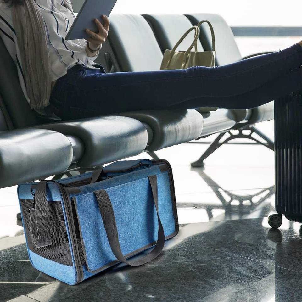 กระเป๋าใส่สัตว์เลี้ยงแบบนิ่ม สำหรับเดินทางทางอากาศ พร้อมสายจูงนิรภัยด้านใน สำหรับสัตว์เลี้ยงขนาดเล็ก-กลาง (ตัวอย่างสินค้าฟรี)