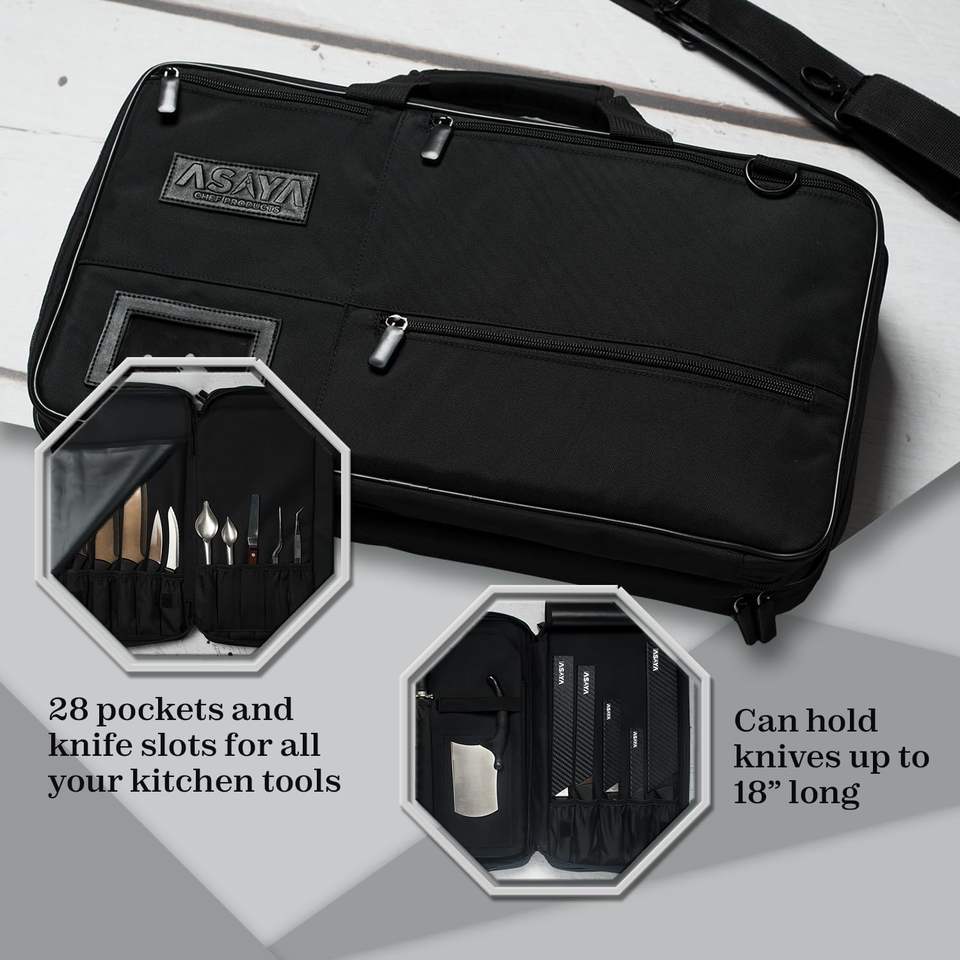 กระเป๋าใส่มีดเชฟแบบม้วน ตัวอย่างฟรี 20 ช่อง สำหรับใส่มีดและอุปกรณ์ครัว ผลิตจากไนลอนเคลือบแว็กซ์กันเปื้อน เหมาะสำหรับนักเรียนทำอาหาร