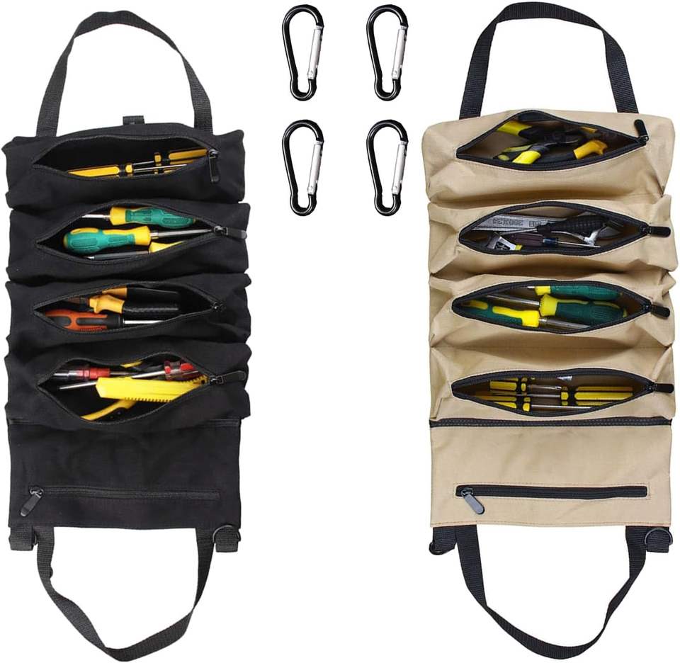 กระเป๋าใส่เครื่องมือแบบม้วน ผ้าแคนวาส ใส่โลโก้ได้ ฟรีตัวอย่าง สำหรับจัดเก็บเครื่องมืออเนกประสงค์ พร้อมซิปและห่วงแขวน