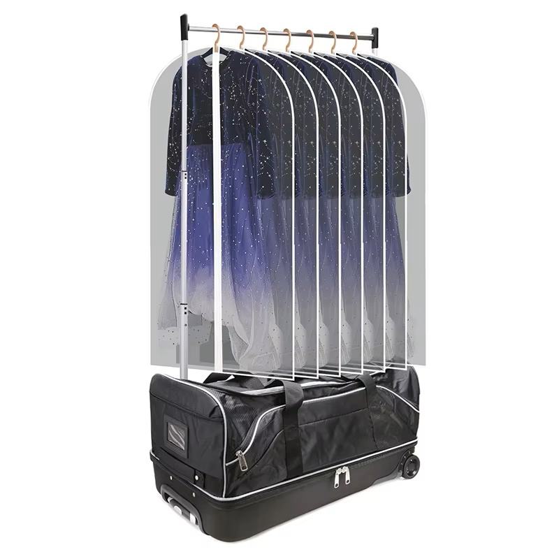กระเป๋าเต้นรำแบบมีล้อพร้อมราวแขวนเสื้อผ้าแบบยืดหดได้ ขนาด 28 นิ้ว สำหรับการแข่งขันและการแสดง ตัวอย่างสินค้าฟรี