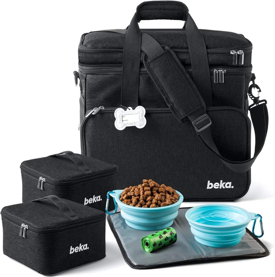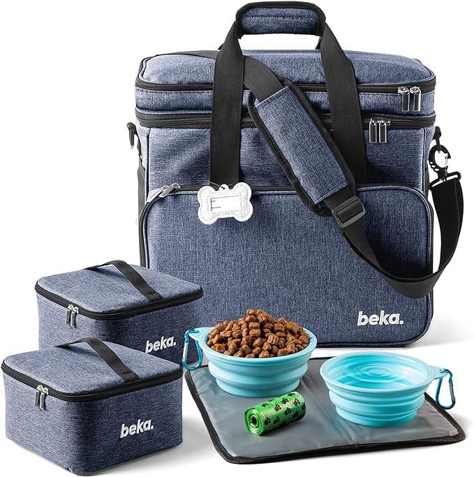 กระเป๋าเดินทางสำหรับสุนัข-อุปกรณ์จัดระเบียบสัตว์เลี้ยงสำหรับเดินทางพร้อมภาชนะใส่อาหารและชามเหมาะสำหรับการตั้งแคมป์ในวันหยุดสุดสัปดาห์