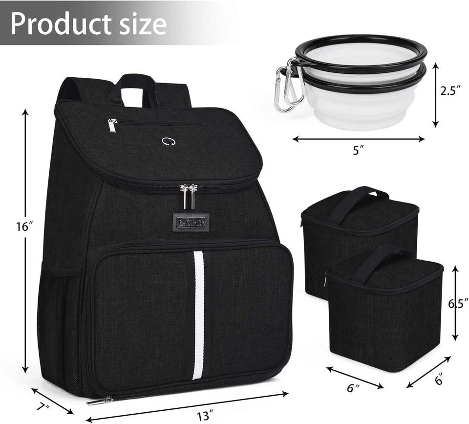 กระเป๋าเดินทางใส่อาหารสุนัขพร้อมชามและภาชนะบรรจุอาหารสุนัข