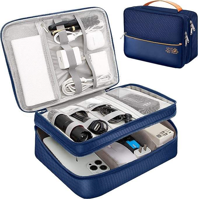 กระเป๋าอุปกรณ์อิเล็กทรอนิกส์แบบพกพา ตัวอย่างฟรี กระเป๋าใส่อุปกรณ์เสริมสำหรับเดินทาง กันน้ำ ช่องเก็บของสองชั้น