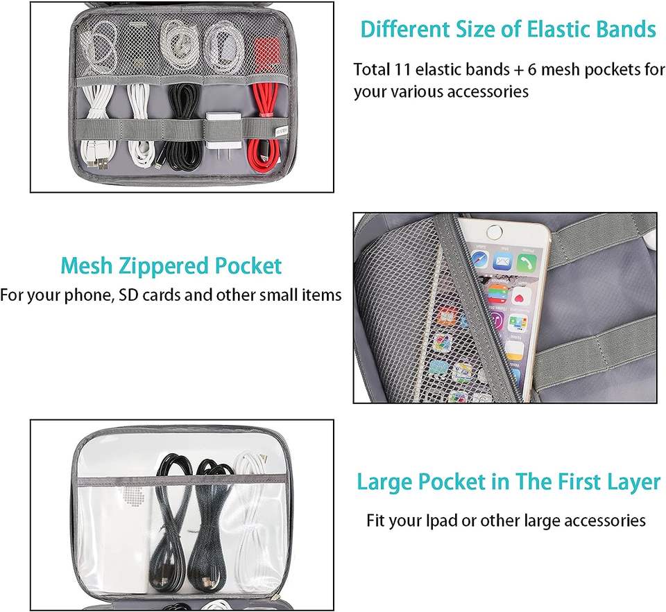 กระเป๋าจัดเก็บสายอิเล็กทรอนิกส์แบบพกพา ตัวอย่างฟรี - กระเป๋าเก็บอุปกรณ์อิเล็กทรอนิกส์แบบสองชั้นสำหรับการเดินทาง