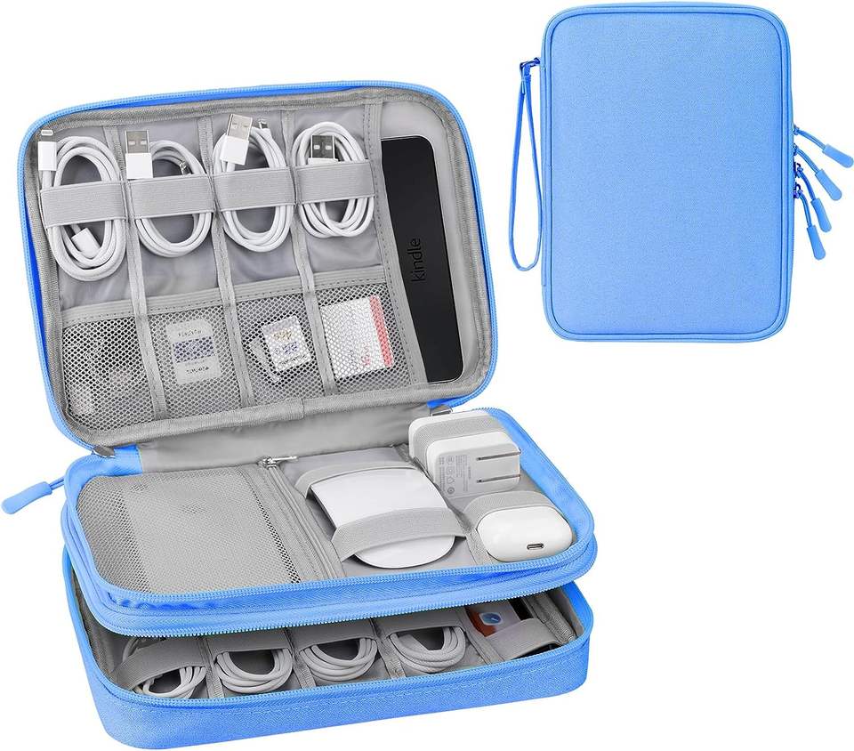 กระเป๋าจัดระเบียบอุปกรณ์อิเล็กทรอนิกส์แบบสองชั้น ขนาดใหญ่ สำหรับเดินทาง ตัวอย่างสินค้าฟรี
