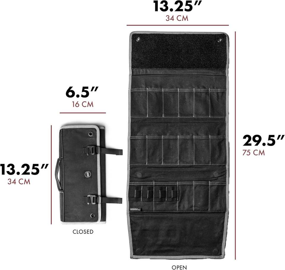 กระเป๋าใส่ชุดมีดเชฟแบบผ้าแคนวาสสั่งทำได้จากโรงงานพร้อมช่องใส่มีด 10 ช่องและช่องซิปขนาดใหญ่ แจกตัวอย่างฟรี