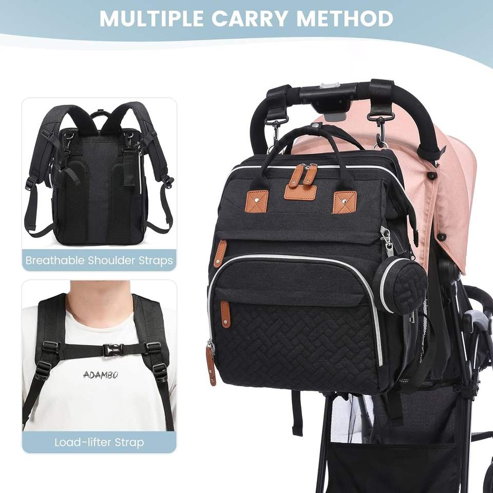 กระเป๋าเป้สะพายหลังสำหรับเดินทางแฟชั่นผ้าอ้อมเด็กอเนกประสงค์พร้อมแผ่นรองสำหรับเปลี่ยน