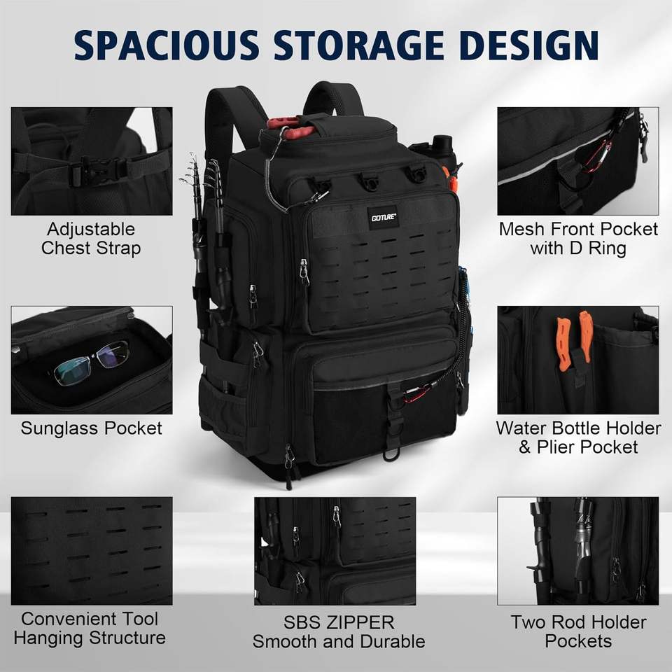 กระเป๋าเป้ตกปลาพร้อมที่ใส่คันเบ็ด ตัวอย่างสินค้าฟรี - กระเป๋าสะพายใส่อุปกรณ์ตกปลา - ของขวัญสำหรับตกปลาแบบฟลายฟิชชิ่งสำหรับผู้ชายและผู้หญิง