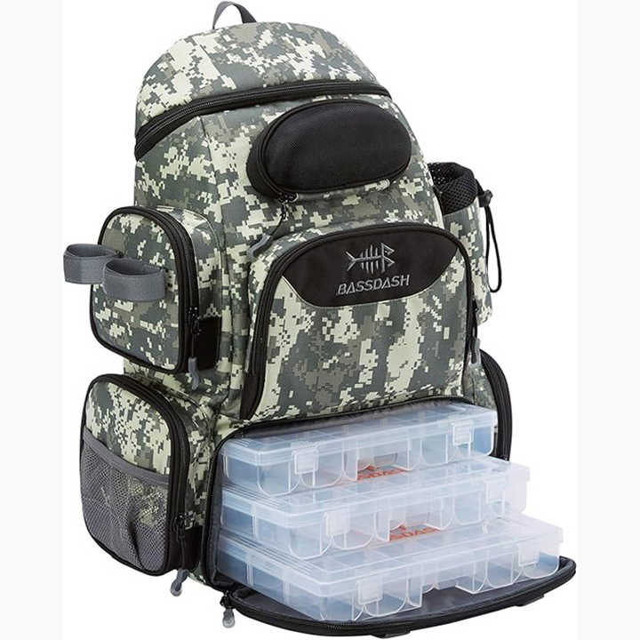 กระเป๋าเป้ตกปลาพร้อมกล่องอุปกรณ์ตกปลา ฟรี! กระเป๋าสะพายข้างใส่อุปกรณ์ตกปลาพร้อมที่ใส่คันเบ็ด ชุดเหยื่อตกปลา และชุดคีม สำหรับผู้ชายและผู้หญิง