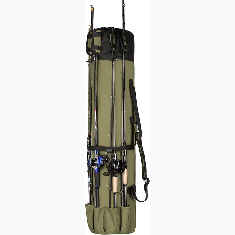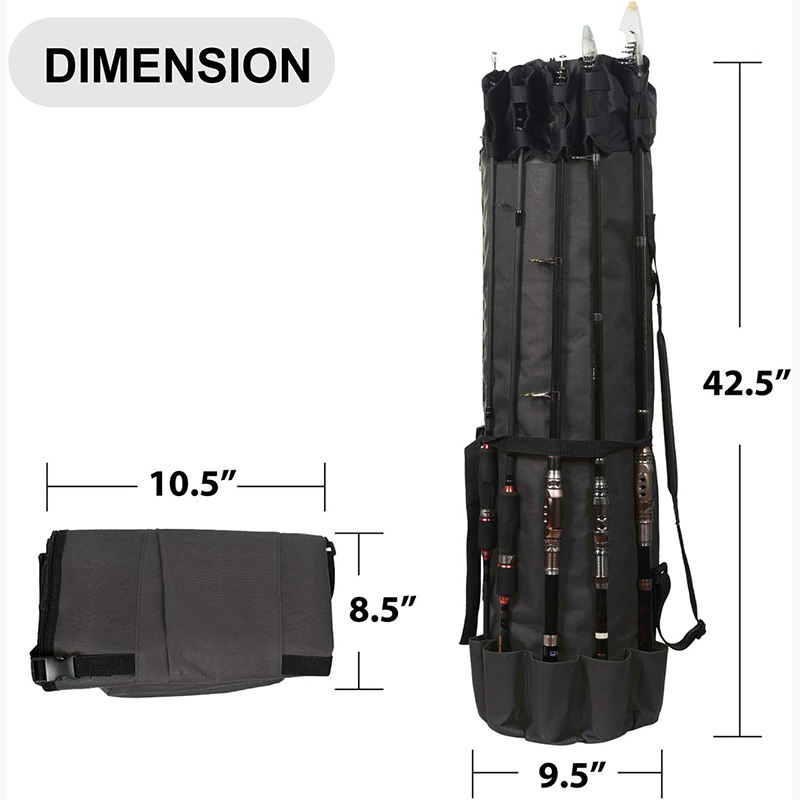 กระเป๋าใส่คันเบ็ดตกปลา ตัวอย่างสินค้าฟรี ทนทาน พับได้ ผลิตจากผ้า Oxford กระเป๋าใส่อุปกรณ์ตกปลาอเนกประสงค์ ความจุขนาดใหญ่