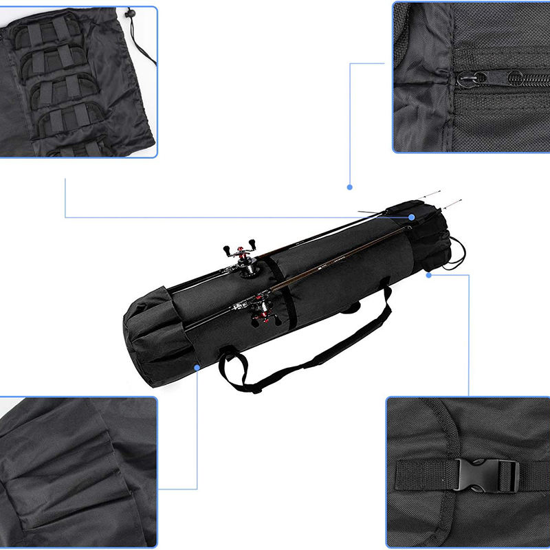 กระเป๋าใส่คันเบ็ดแบบพับได้ พร้อมที่ใส่คันเบ็ด กระเป๋าผ้าแคนวาสสำหรับใส่คันเบ็ดและรอก กระเป๋าจัดระเบียบอุปกรณ์ตกปลา ตัวอย่างสินค้าฟรี