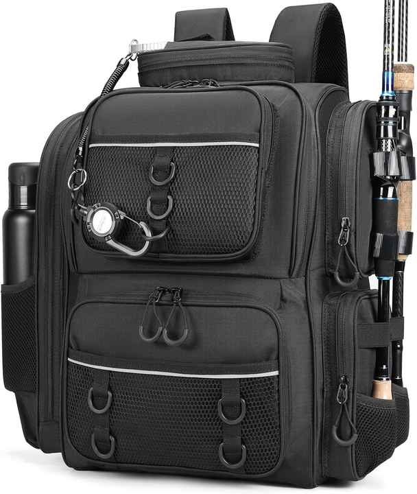 กระเป๋าเป้ใส่อุปกรณ์ตกปลา พร้อมที่ใส่คันเบ็ด ที่ใส่ขวดน้ำ และช่องเก็บของ ตัวอย่างสินค้าฟรี