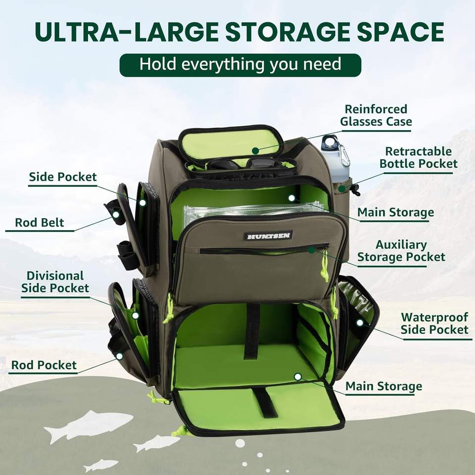 กระเป๋าเป้ใส่อุปกรณ์ตกปลา พร้อมที่ใส่คันเบ็ด ที่ใส่ขวดน้ำ และช่องเก็บของ สำหรับเก็บอุปกรณ์ตกปลา ตัวอย่างสินค้าฟรี
