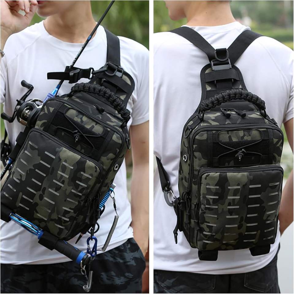 กระเป๋าอุปกรณ์ตกปลาตัวอย่างฟรี - กระเป๋าตกปลาสำหรับตกปลาในน้ำเค็มหรือน้ำจืด - ผ้า PE ป้องกันการฉีกขาด - สายสะพายไหล่บุนวม