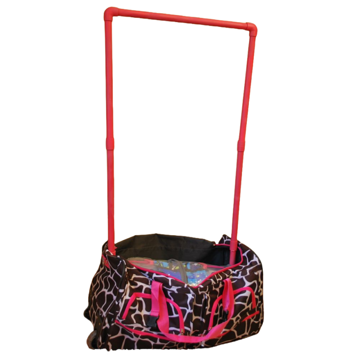 ตัวอย่างสินค้าฟรี ราวแขวนเสื้อผ้าและกระเป๋าเต้นรำ กระเป๋าเต้นรำแบบใหม่พร้อมช่องใส่ของด้านล่าง และกระเป๋าเดินทางแบบมีล้อพร้อมราวแขวนเสื้อผ้า