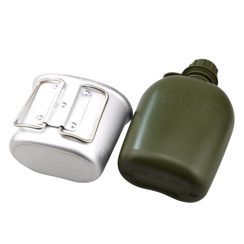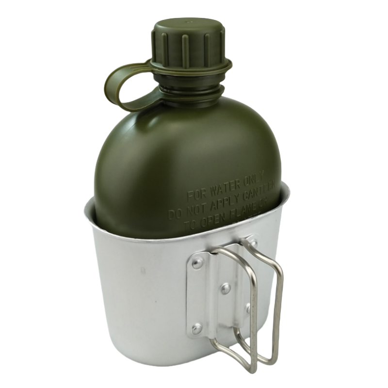 ขวด1L พร้อมแก้ว0.6L อลูมิเนียมสำหรับการล่าสัตว์การตั้งแคมป์และการล่าสัตว์ยุทธวิธีการล่ากลางแจ้ง