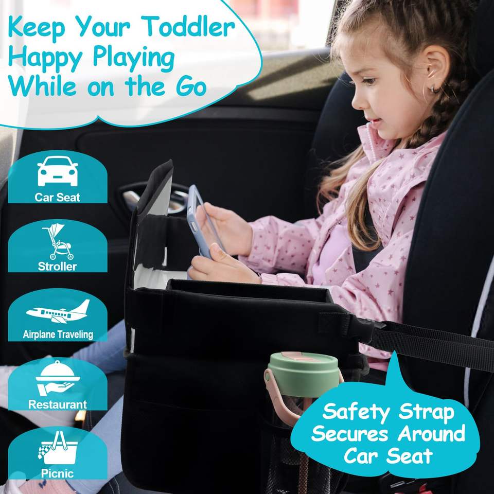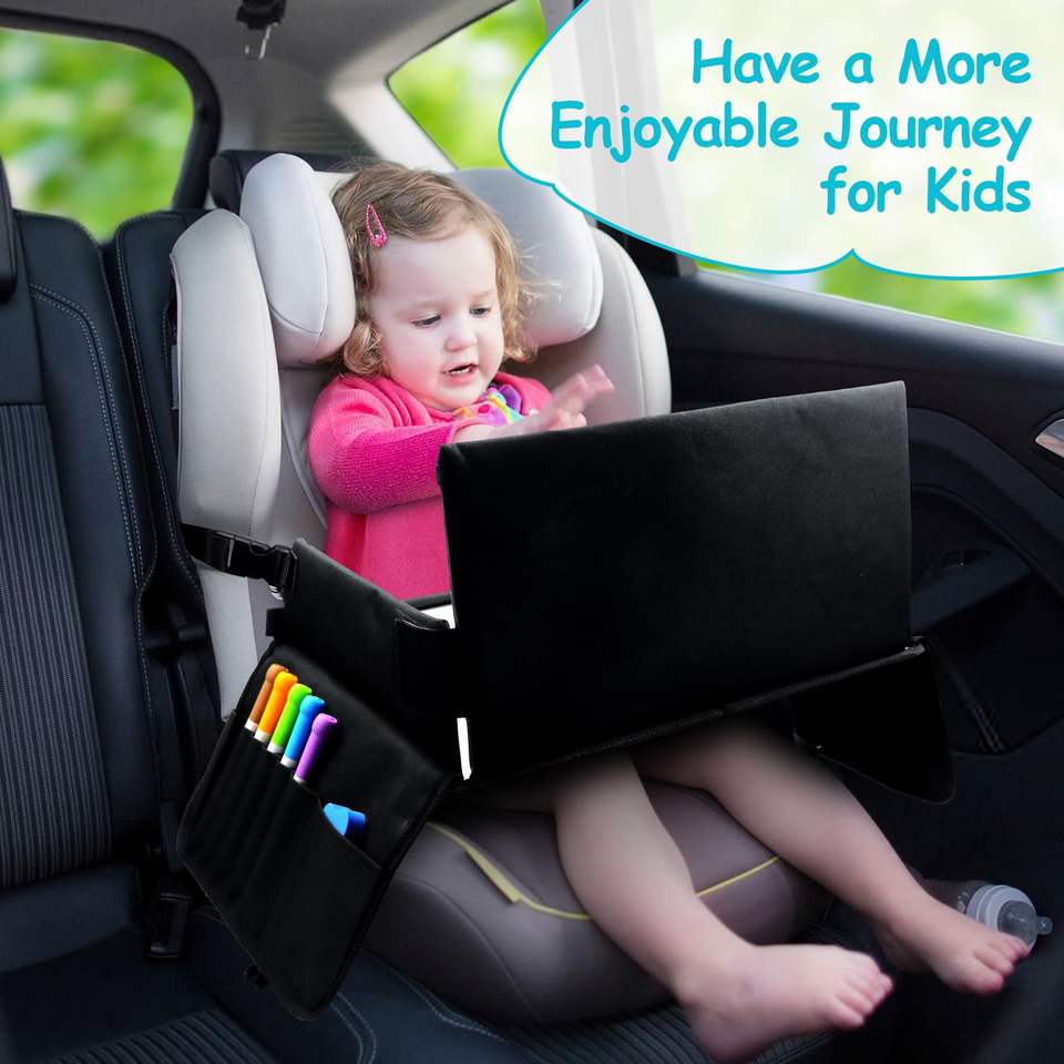 ถาดวางของสำหรับเด็กในรถยนต์ พร้อมกระดานไวท์บอร์ด สำหรับใส่อาหารและกิจกรรม ถาดวางของบนเบาะรถยนต์สำหรับเด็กเล็ก ตัวอย่างสินค้าฟรี
