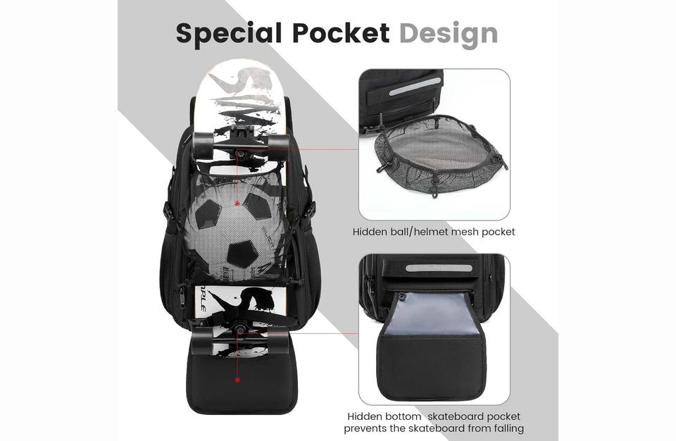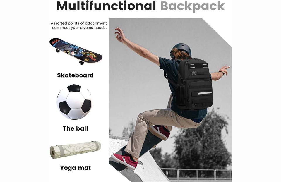 กระเป๋าสเก็ตบอร์ดกลางแจ้งความจุขนาดใหญ่กระเป๋าเป้ลองบอร์ดแล็ปท็อปพร้อมพอร์ตชาร์จ USB สำหรับการเดินทางเล่นกีฬา