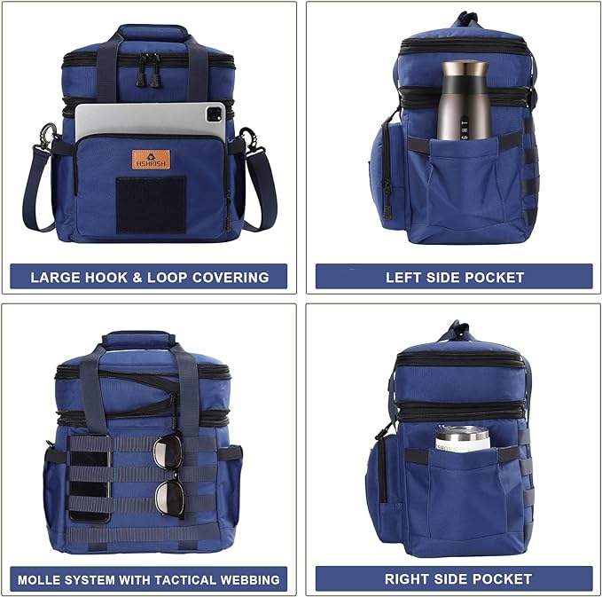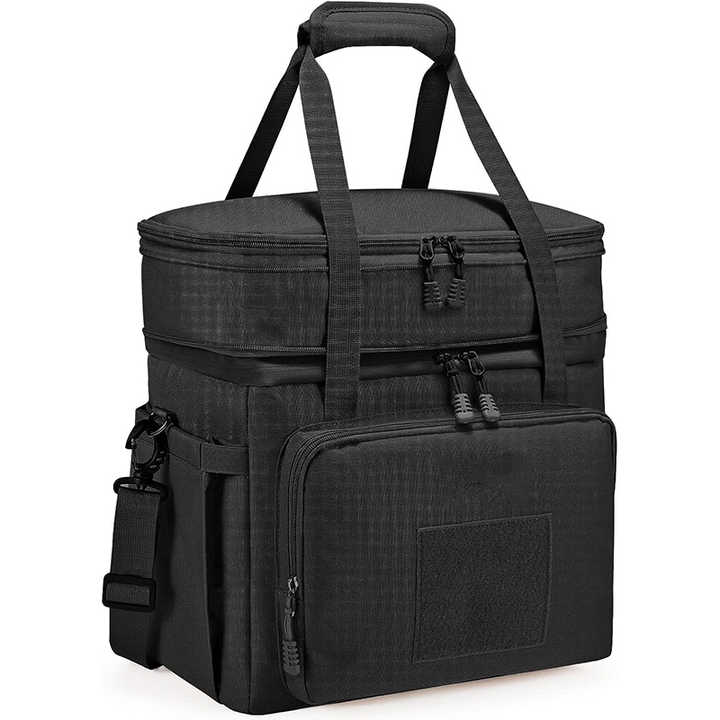 กระเป๋าใส่อาหารกลางวันขนาดใหญ่แบบมีฉนวน กระเป๋าเก็บความเย็นแบบนุ่ม สำหรับผู้ใหญ่ ชาย หญิง สีดำ ใส่ได้ 12 กระป๋อง ตัวอย่างสินค้าฟรี