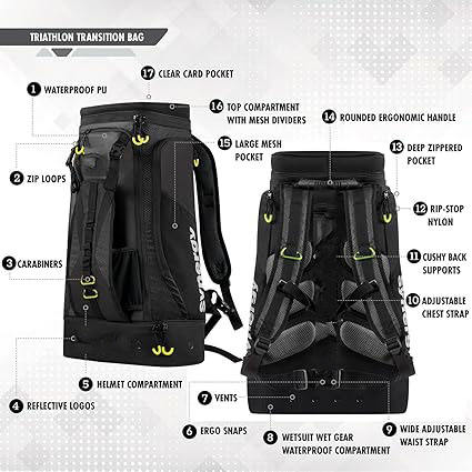 กระเป๋าเป้สะพายหลังไตรกีฬากันน้ำกันขโมยน้ำหนักเบา, กระเป๋าผ้าโพลีเอสเตอร์นุ่มพับเก็บได้สำหรับว่ายน้ำ