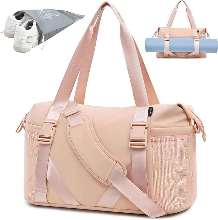 กระเป๋าเดินทางอเนกประสงค์แบบมีซิปสำหรับผู้หญิง ตัวอย่างสินค้าฟรี พับเก็บได้ กันน้ำ แยกช่องแห้งและเปียก เหมาะสำหรับการเดินทางระยะสั้น ใช้เป็นกระเป๋าโยคะได้