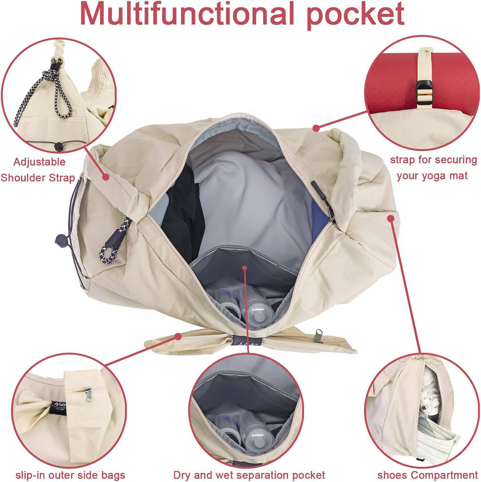 กระเป๋าไนลอนกันน้ำสำหรับไปยิมโยคะในช่วงสุดสัปดาห์กระเป๋าค้างคืนกระเป๋าใส่ออกกำลังกายความจุขนาดใหญ่ออกแบบโลโก้ได้ตามต้องการ