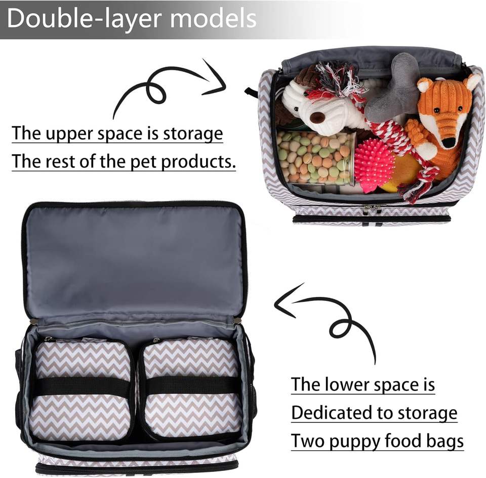 ถุงเก็บอาหารสัตว์เลี้ยงกระเป๋าใส่อาหารสุนัข14ถ้วยพร้อมชามอาหารสุนัขแบบพับได้2ชิ้น