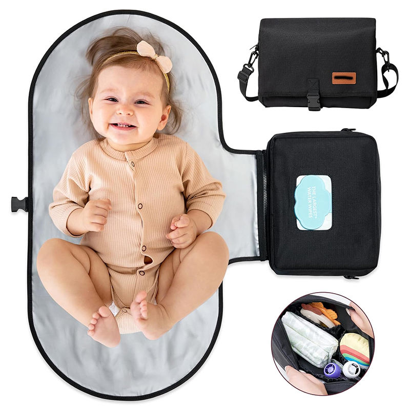 แผ่นรองเปลี่ยนผ้าอ้อมพกพาแบบฟรี - กระเป๋าเปลี่ยนผ้าอ้อมเด็กแบบพกพาพร้อมช่องใส่ทิชชู่เปียก ดีไซน์อัจฉริยะ