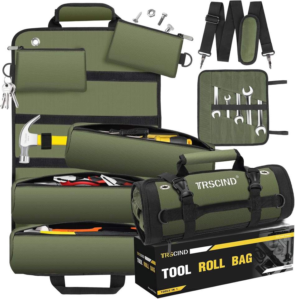 กระเป๋าเครื่องมือช่างแบบม้วนพกพาสะดวก หลายช่องใส่ของ พร้อมหูหิ้ว ตัวอย่างสินค้าฟรี