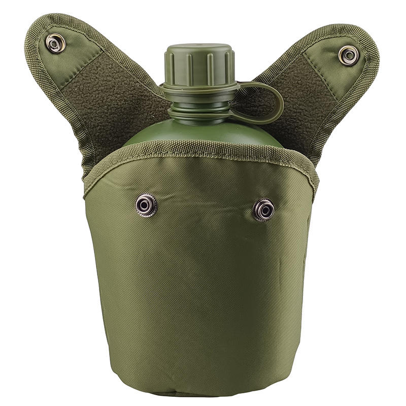กระติกน้ำดื่มแบบยุทธวิธีขนาด 1 ลิตร พรีเมียม ตัวอย่างฟรี ทำจากอะลูมิเนียม พร้อมปลอกลายพรางสีเขียวดำ