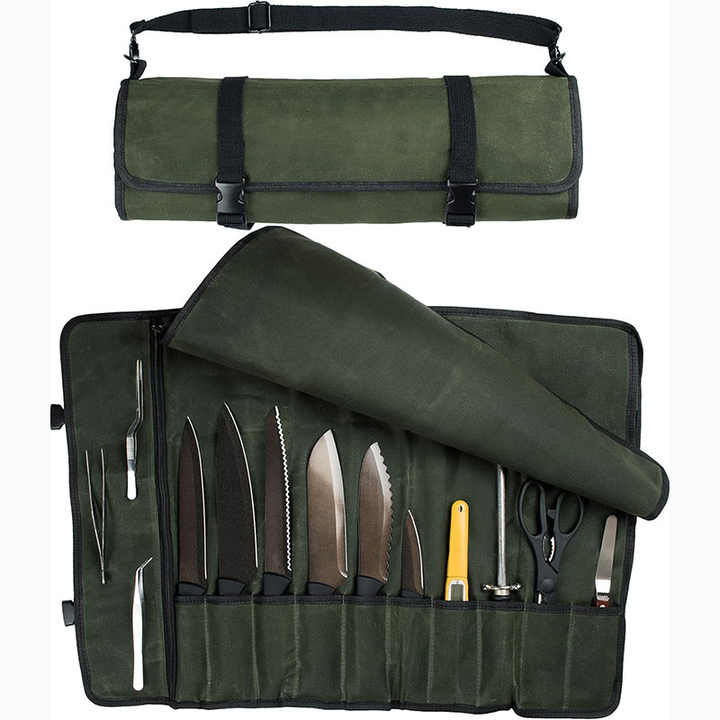 กระเป๋าใส่มีดทำครัวแบบมืออาชีพ ตัวอย่างฟรี กระเป๋าใส่อุปกรณ์ทำครัว กระเป๋าใส่มีดสำหรับนักล่า ป้องกันรอยขีดข่วน กระเป๋าใส่มีดเชฟหนังขนาดใหญ่สำหรับเดินทาง