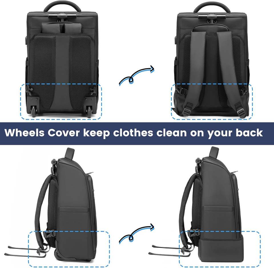 กระเป๋าเป้สะพายหลังแบบมีล้อสำหรับเดินทางเพื่อธุรกิจ ตัวอย่างสินค้าฟรี กระเป๋าเป้เดินทางแบบมีล้อสำหรับผู้ชายและผู้หญิง