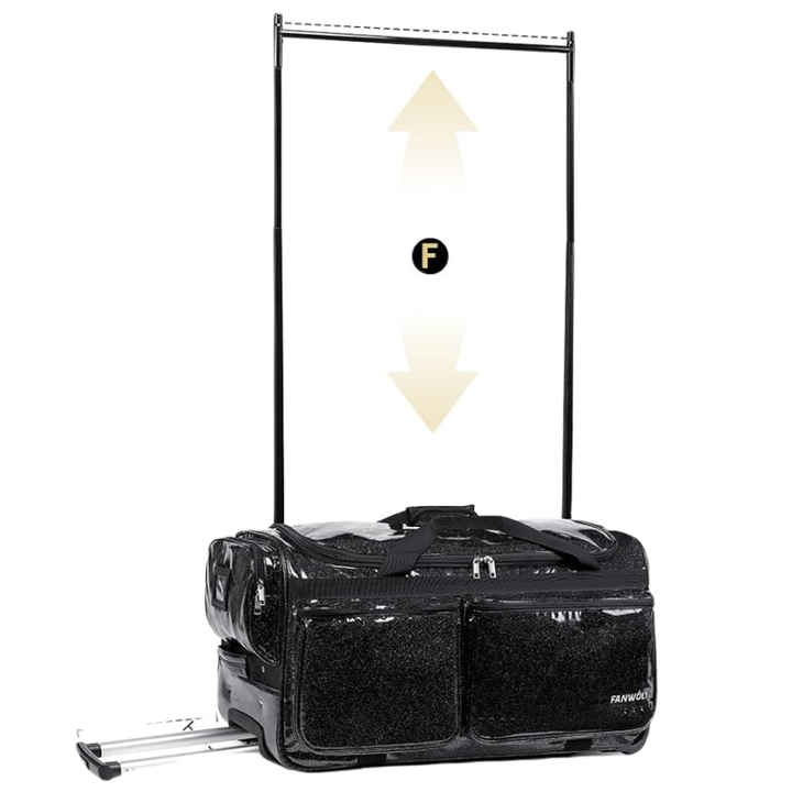 กระเป๋าเต้นรำแบบมีล้อพร้อมชั้นวางเครื่องสำอางและชุดเต้นรำแบบแขวน ตัวอย่างสินค้าฟรี ไม่มีค่าใช้จ่าย