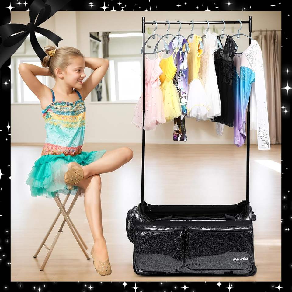 กระเป๋าเต้นรำแบบมีล้อพร้อมชั้นวางเครื่องสำอางและชุดเต้นรำแบบแขวน ตัวอย่างสินค้าฟรี ไม่มีค่าใช้จ่าย