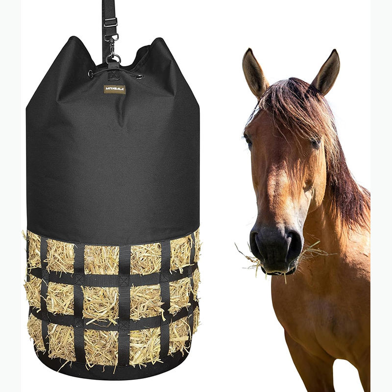 ถุงใส่หญ้าแห้งแบบช้าสำหรับม้าแกะแพะกระเป๋าใส่หญ้าแห้งแบบแขวนสำหรับม้าของเล่นที่มีเสถียรภาพ