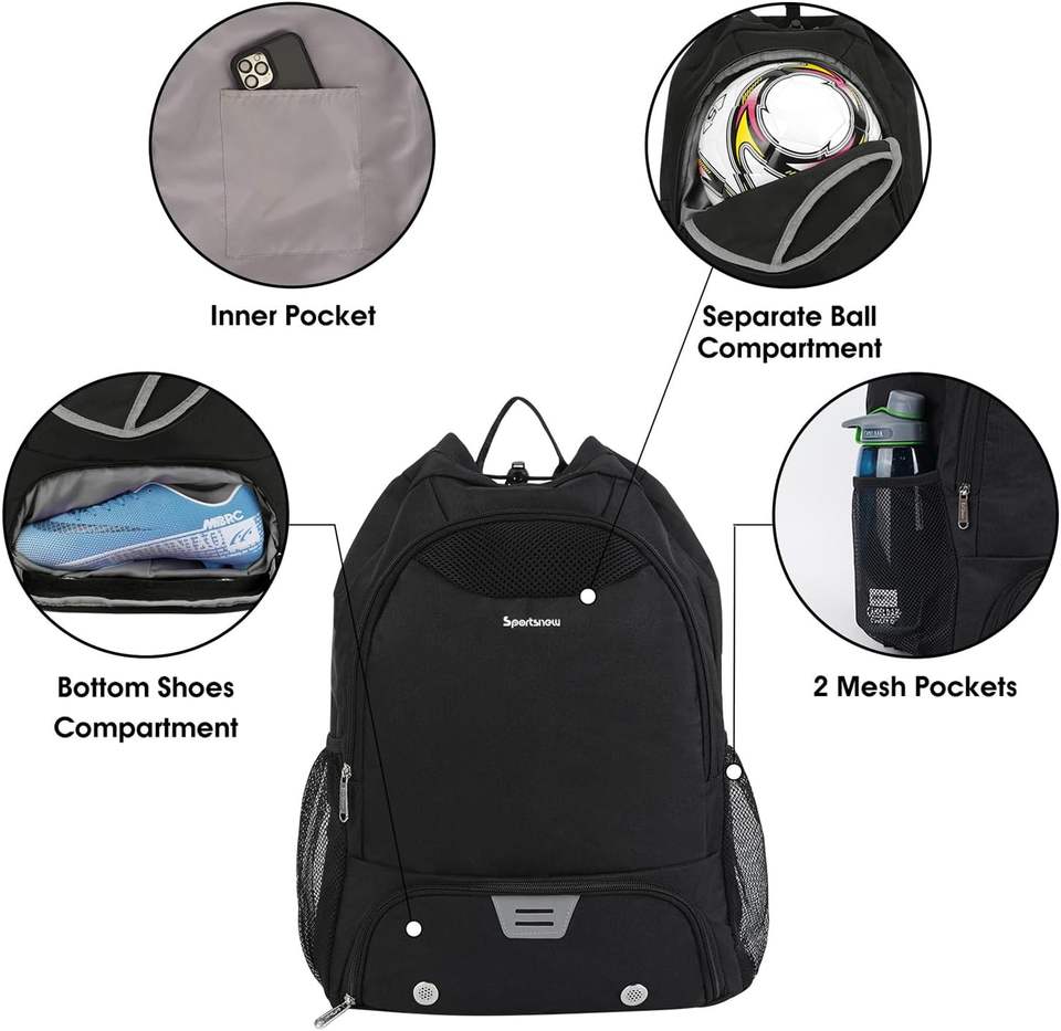 กระเป๋าเป้ฟุตบอลตัวอย่างฟรี พร้อมช่องใส่รองเท้าและลูกบอลแยกต่างหาก กระเป๋าเป้กีฬาแบบกำหนดเองสำหรับฟุตบอลและบาสเกตบอล