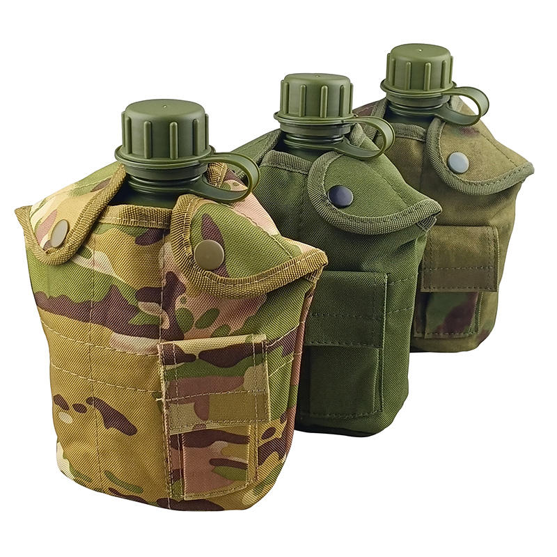 ตัวอย่างฟรี ชุดขวดน้ำอลูมิเนียมสามชิ้นสไตล์ Tactical Attack กระติกน้ำขนาด 1.0 ลิตร พร้อมแก้วและกระเป๋าหุ้ม
