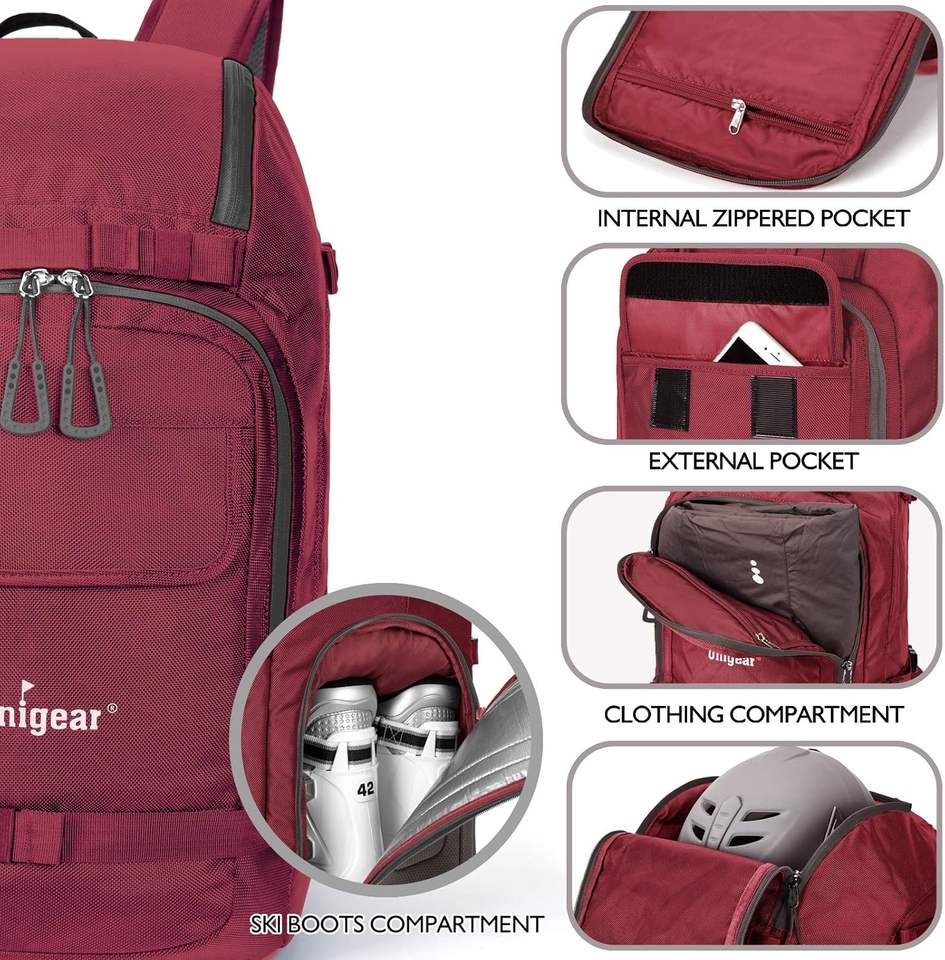กระเป๋าเป้เดินทางสำหรับใส่รองเท้าสกีและสโนว์บอร์ด หมวกกันน็อค แว่นตา และเสื้อผ้ากันหนาว ตัวอย่างสินค้าฟรี ผลิตมาเพื่อให้ใช้งานได้ยาวนาน