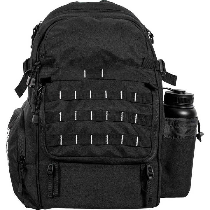 กระเป๋าเป้สำหรับดิสก์กอล์ฟแบบมีตัวอย่างให้ทดลองใช้ฟรี มีโครงรองรับด้านข้างสองชั้น/สายรัดแบบโมลล์ และความจุสำหรับใส่ดิสก์ 24-26 ใบ