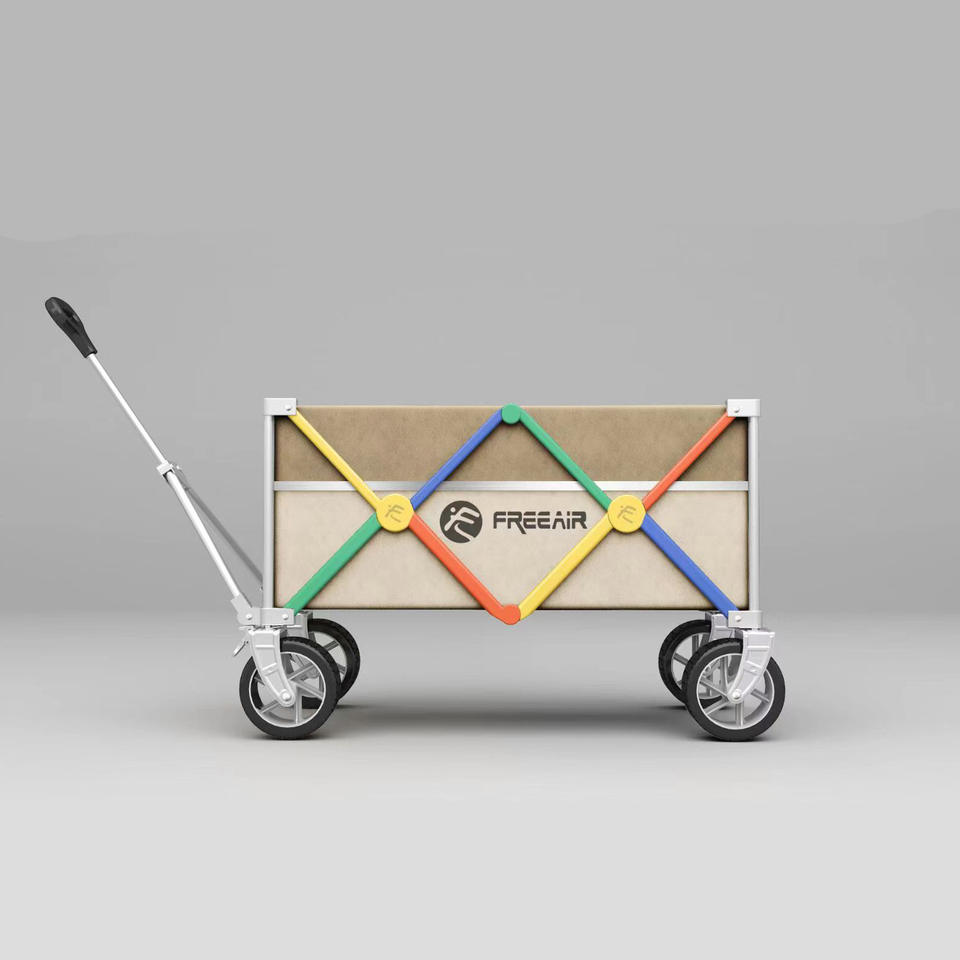 Freeair Camping Cart Four-Wheel Foldable Metal Outdoor Trolley Multi-Color 300 Jin Load Capacity Portable Customized