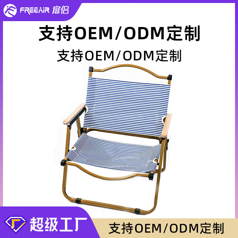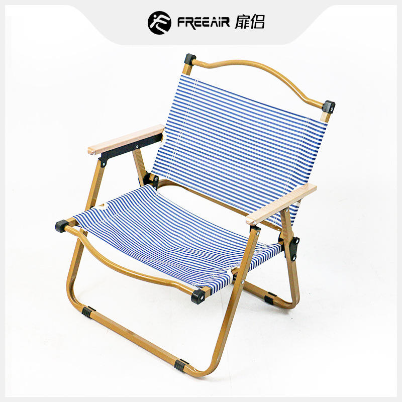 ฟรีแอร์ เคอร์มิตเก้าอี้ชายหาดกลางแจ้งแบบพับได้ลายสีฟ้าขาวเก้าอี้ปิคนิคแคมป์ปิ้งแบบพกพา 60x50x40 ซม.