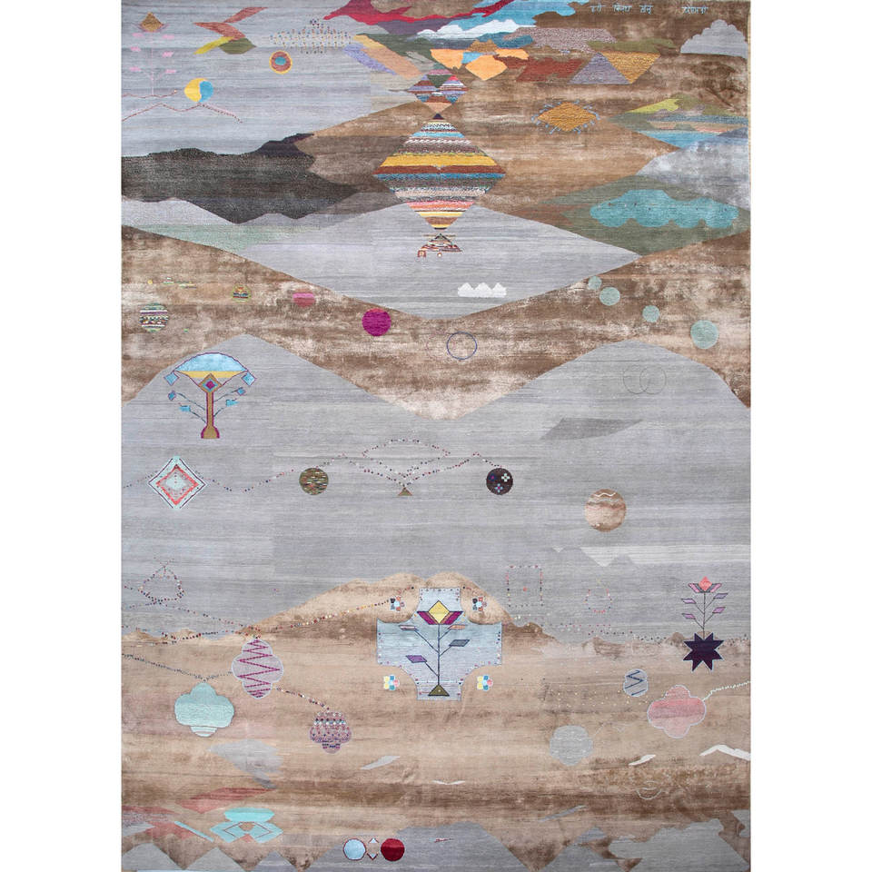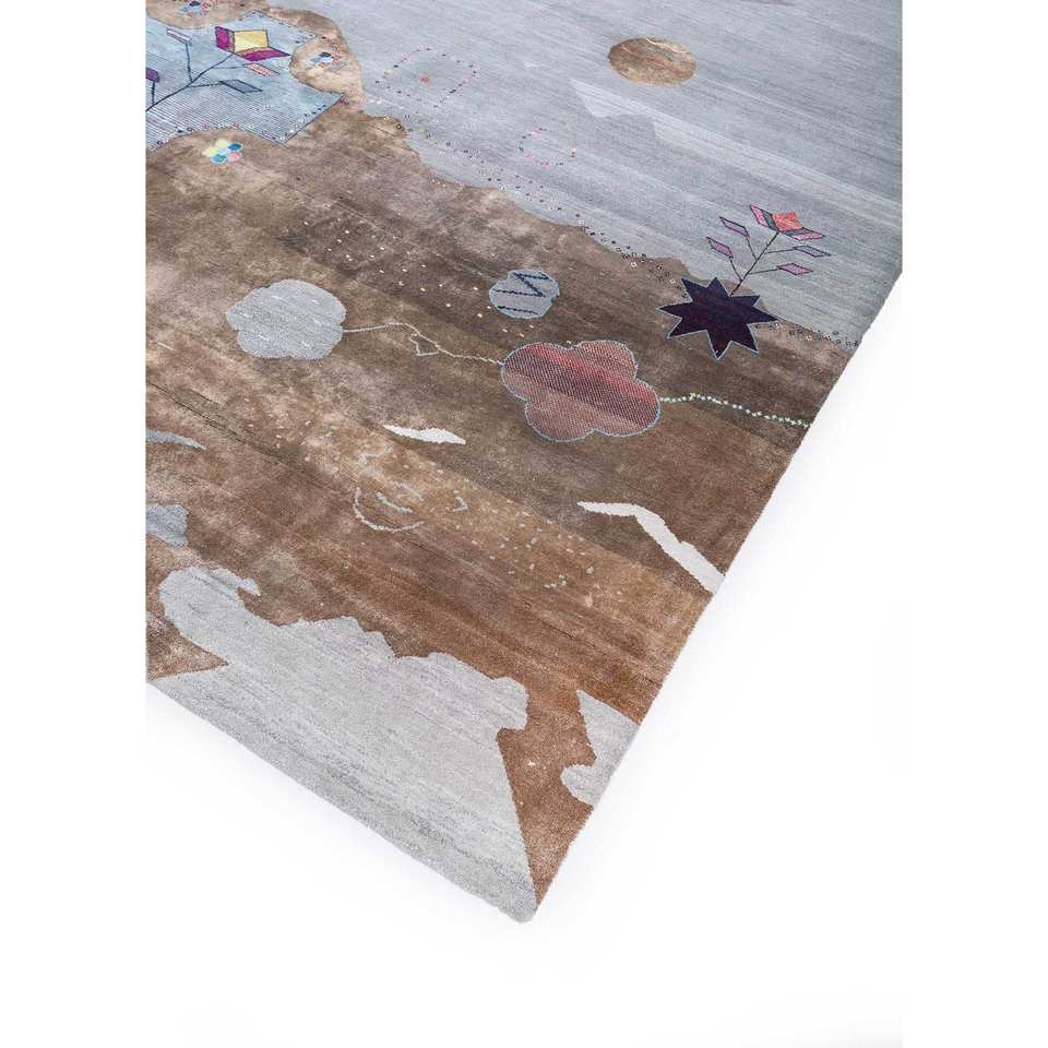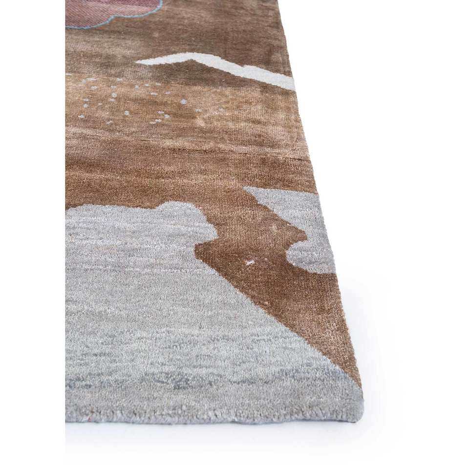 พรมถักมือลายนามธรรม Freedom Manchaha ทำจากขนสัตว์และไหมไผ่ สีเบจและสีน้ำตาล สำหรับตกแต่งบ้าน ห้องนั่งเล่น และทางเดิน-Les-1328