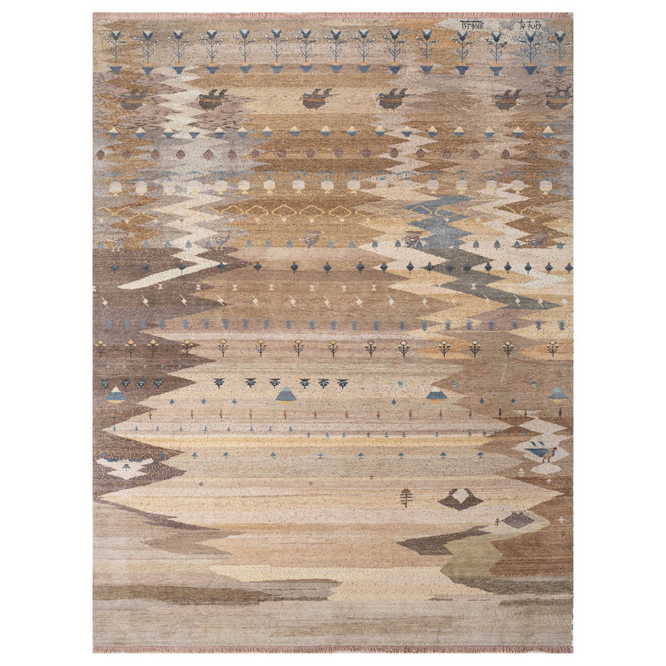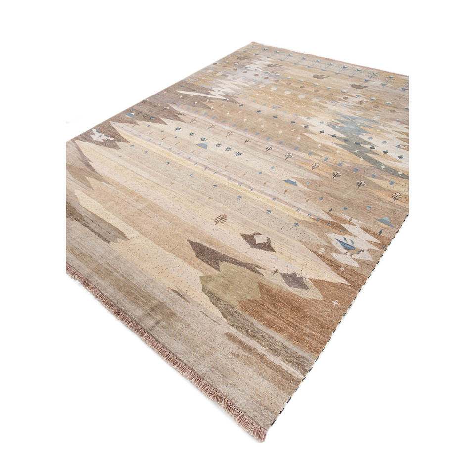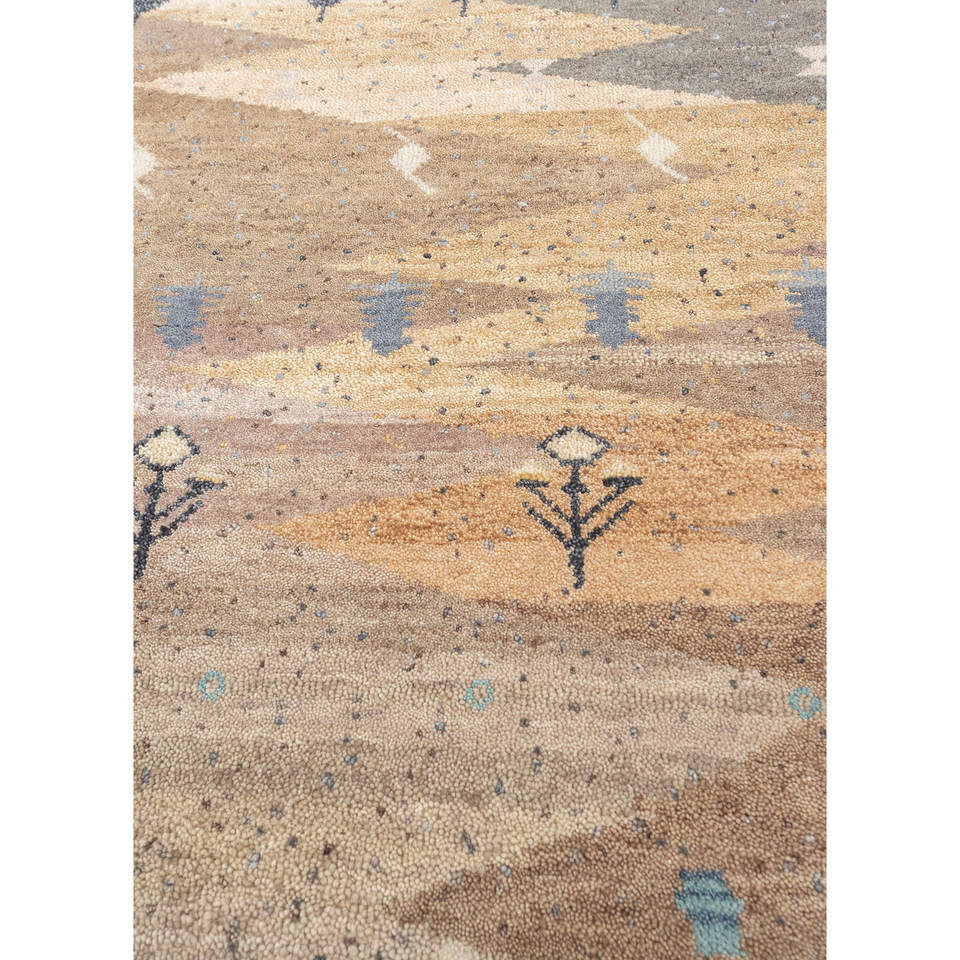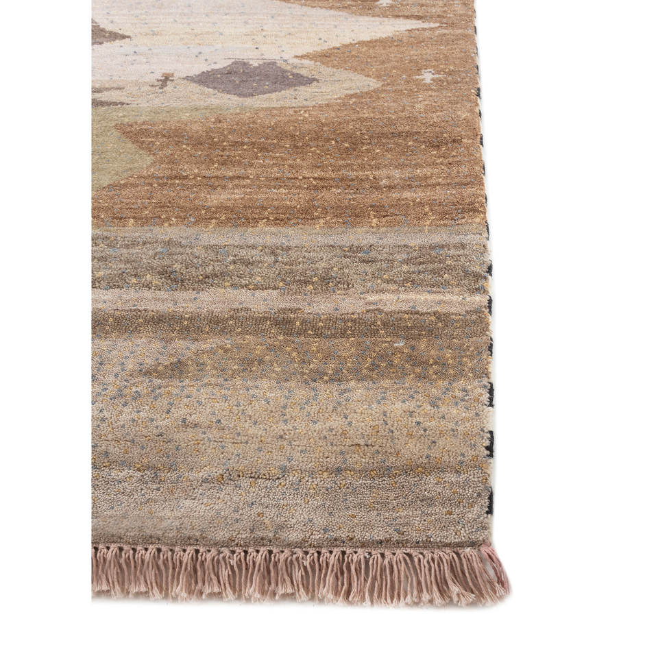 พรมขนสัตว์และไหมถักมือลายเรขาคณิตสีเบจและสีน้ำตาล Freedom Manchaha สำหรับตกแต่งห้องนั่งเล่นหรือทางเดินในบ้าน-Lub-125