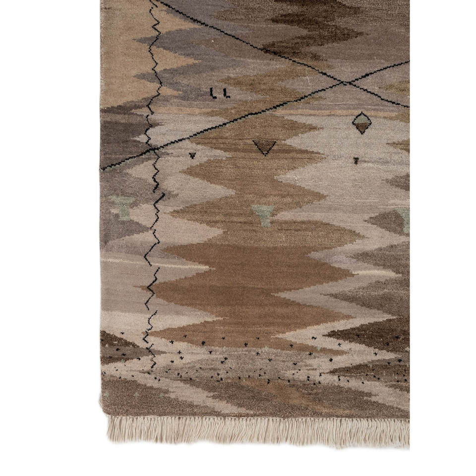 Freedom Manchaha Beige Brown Hand Knotted Wool Silk Rug Geometric Rectangle Design for Home Living Room Hallway Decorations