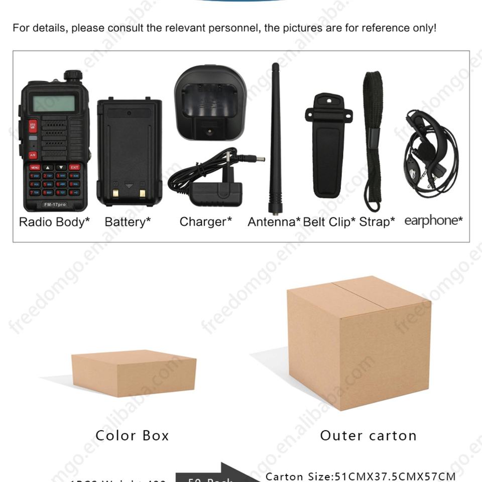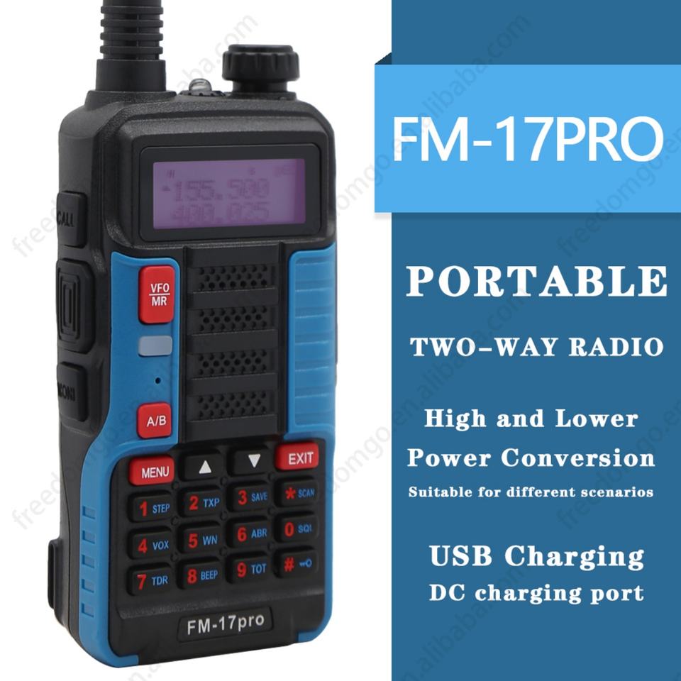 วิทยุสื่อสารแบบพกพา Freedomgo FM-17PRO รุ่น OEM/ODM พร้อมหูฟัง วอล์คกี้ทอล์คกี้ 128 ช่องสัญญาณ VHF UHF คู่ย่านความถี่ ชาร์จผ่าน USB แบตเตอรี่ในตัว
